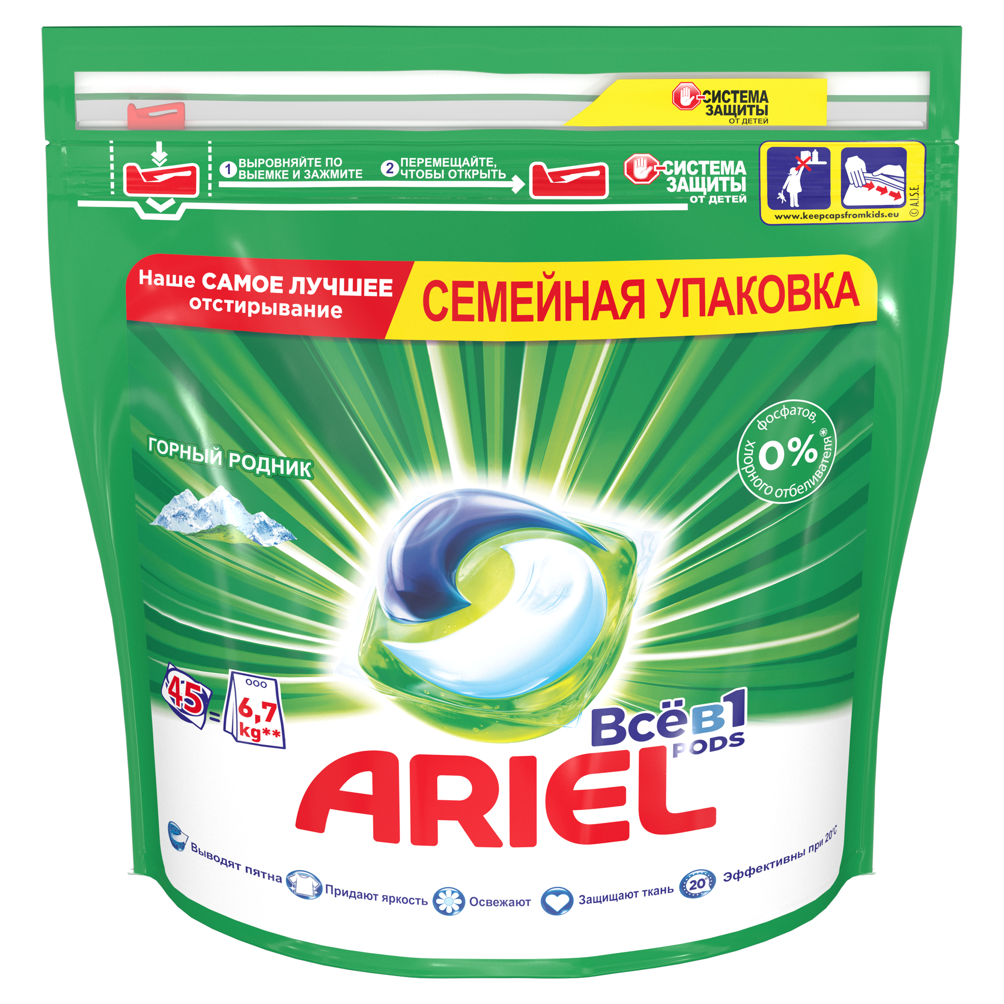 Капсулы для стирки Ariel Pods, Все-в-1, Горный Родник, 45 шт