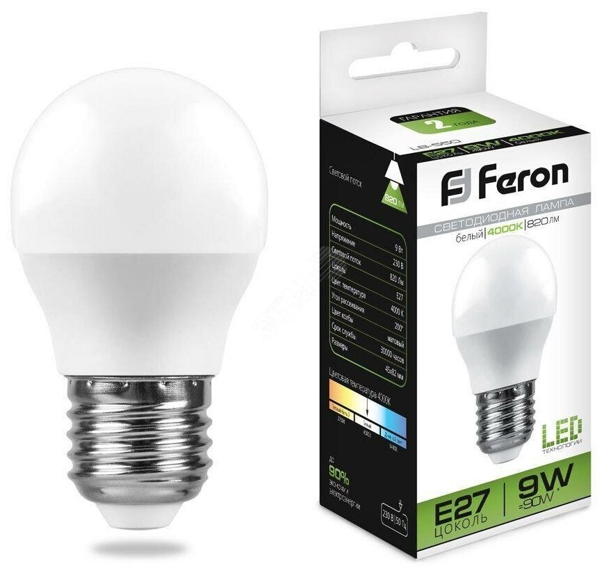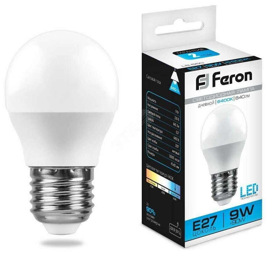 Лампа светодиодная LED 9вт Е27 белый матовый шар (LB-550) информация: