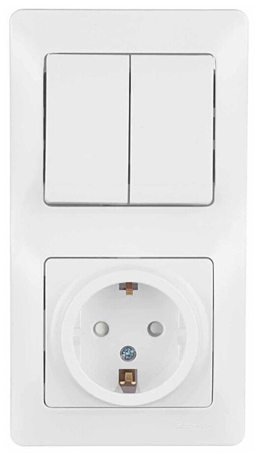Блок: выключатель 2-клавишный и розетка GLOSSA, скрытый монтаж, белый. GSL000174 Schneider Electric
