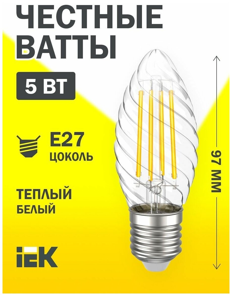 Лампа LED CT35 свеча 5Вт 230В 3000К E27 серия 360° IEK LLF-CT35-5-230-30-E27-CL (1 шт.) информация: