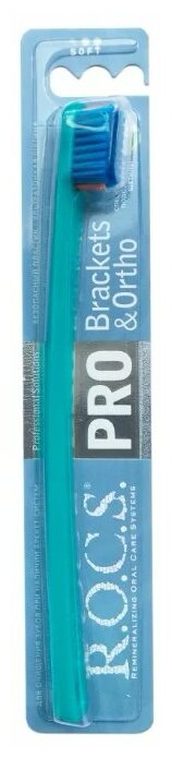 Зубная щетка R.O.C.S. PRO Brackets & Ortho сине-зеленая, мягкая