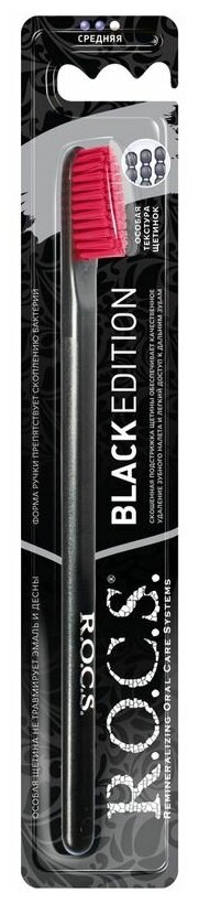 R.O.C.S. Black Edition Classic Зубная щетка средняя черная Цвет щетины в ассортименте: черный, красный, розовый, желтый.