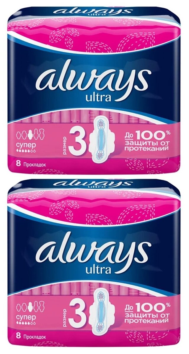 Always Прокладки Ультра Супер, 5 капель, 8 шт в уп, 2 уп