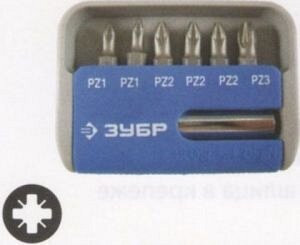 Набор ЗУБР: Биты с магнитным адаптером, хромомолибденовая сталь S2, PZ1(2шт), PZ2(3шт), PZ3(1шт), 7 предметов (26042-H7)
