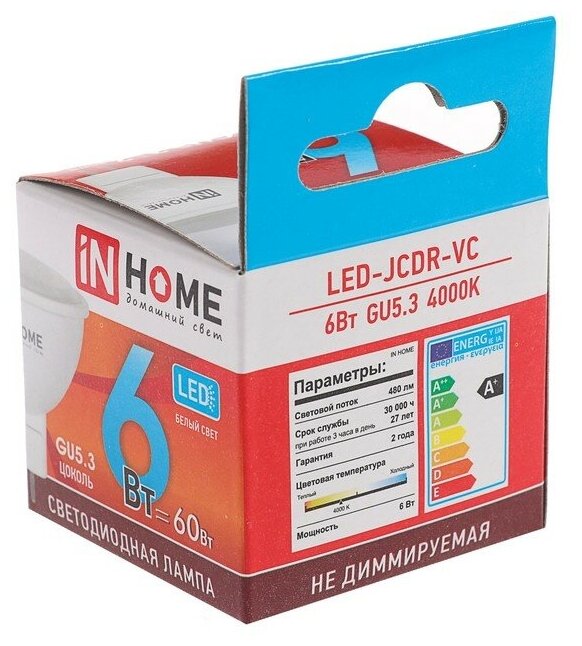 Отзывы на INhome Лампа светодиодная IN HOME, MR16, 6 Вт, GU5.3, 525 Лм, 4000 К, дневной белый