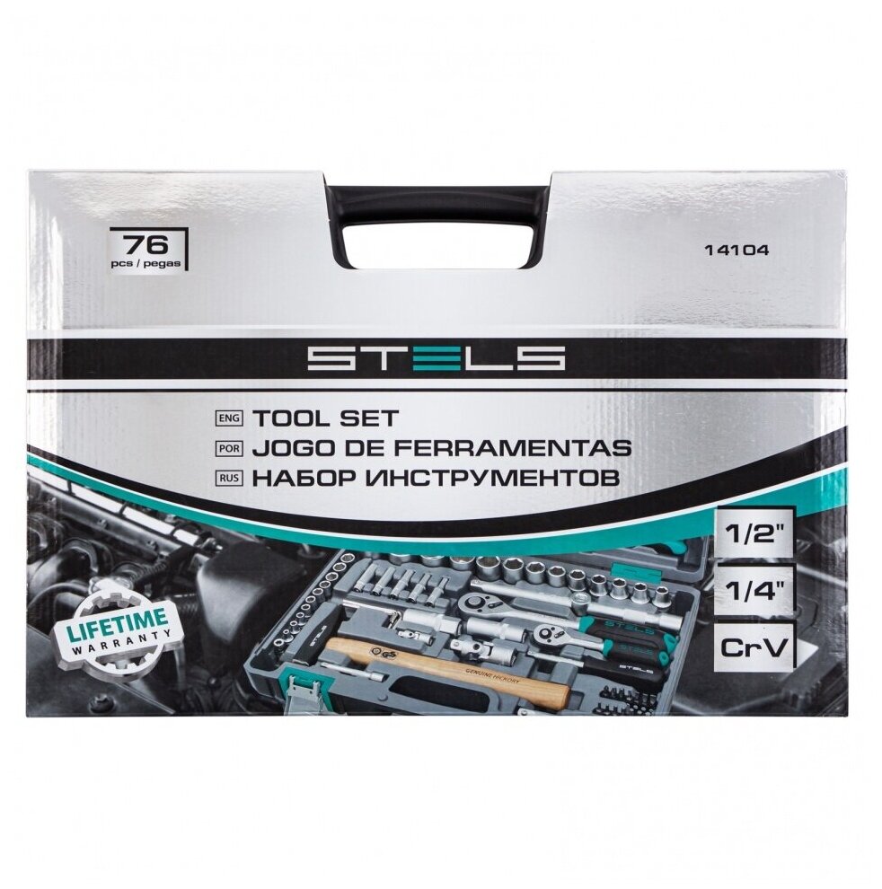 STELS Набор инструментов, 1/2", 1/4", CrV, пластиковый кейс 76 предм.// 14104