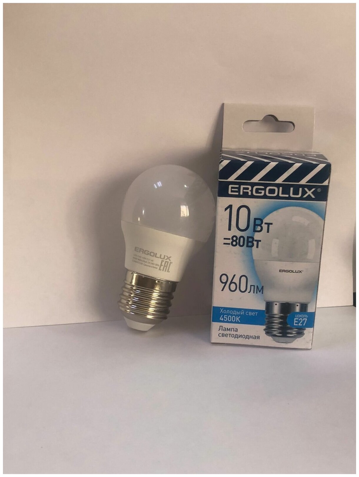 Отзывы на Ergolux LED-G45-10W-E27-4K (Эл.лампа светодиодная Шар 10Вт E27 4500K 220-240В промо)