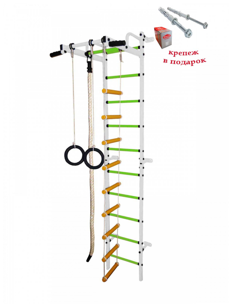 Шведская стенка Формула здоровья Карапуз (Белый-Салатовый) - пристенный детский спортивный комплекс для дома