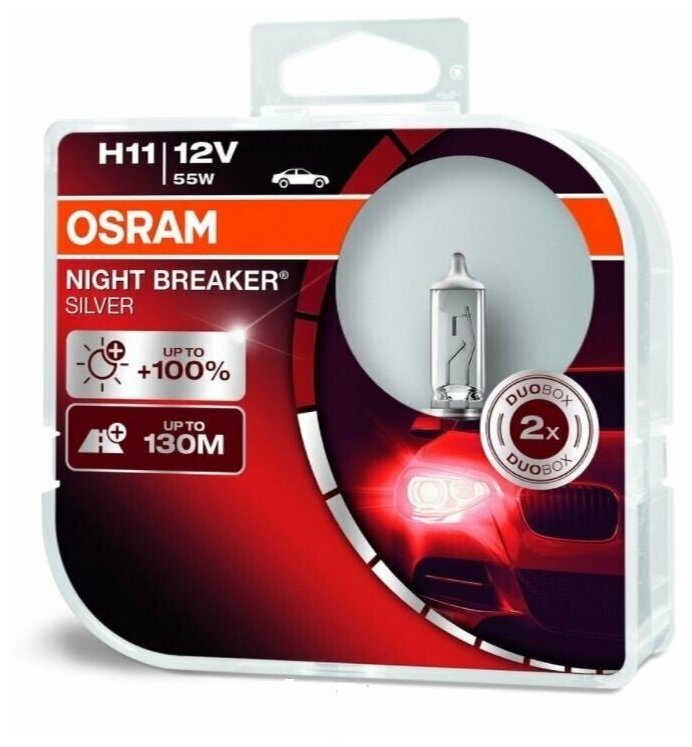 Отзывы на OSRAM Лампа галоген.H11 12 V 55 W Night Breaker Silver +100% иномарки (PGJ19-2) DuoBox (2 шт.) (Osram) - 64211NBSHCB