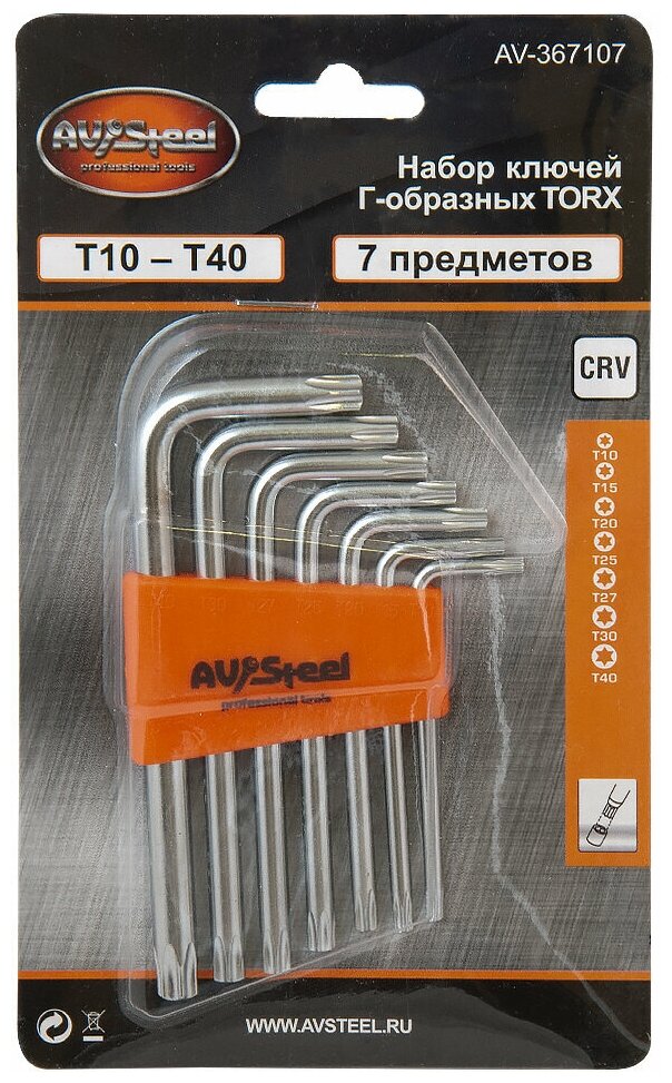 AV Steel Набор ключей Г-образных TORX T10-T40 7 предм., компл AV-367107