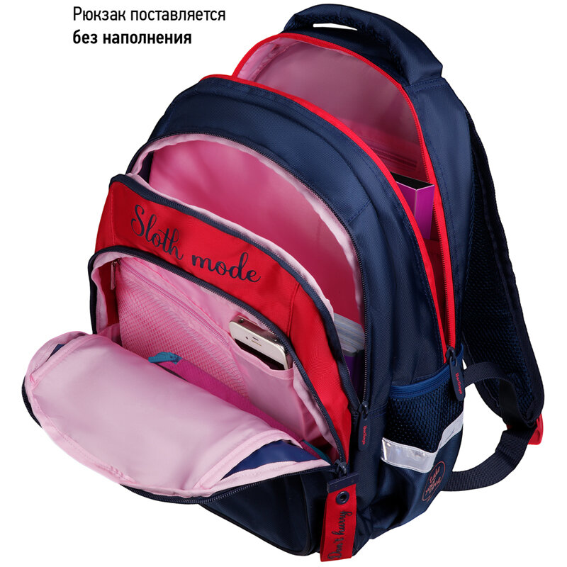 Рюкзак Berlingo Comfort "Sloth mode" RU06707, 38*27*18 см, 3 отделения, 3 кармана, синий, красный информация: