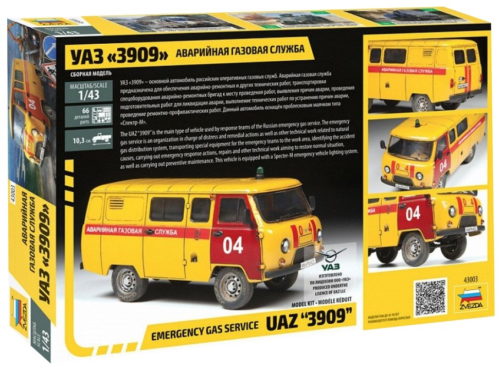 Модель сборная УАЗ 3909 Аварийная газовая служба - Zvezda [43003з] информация: