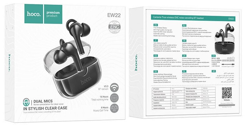 Наушники беспроводные HOCO EW22 c двойным микрофоном и шумоподавлением ENC черные