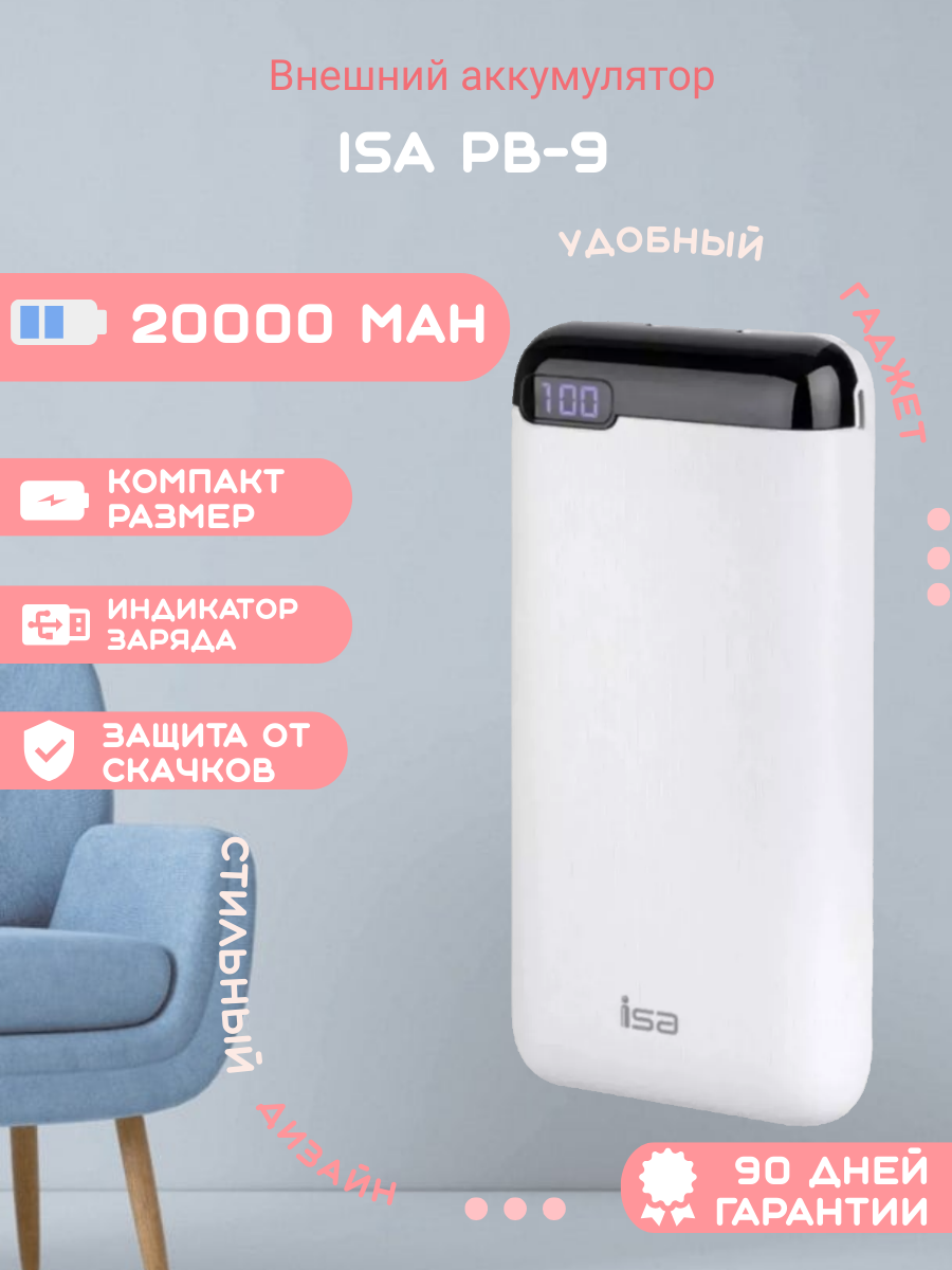 10 цен на Внешний аккумулятор PB-9 20000 mAh белый ISA