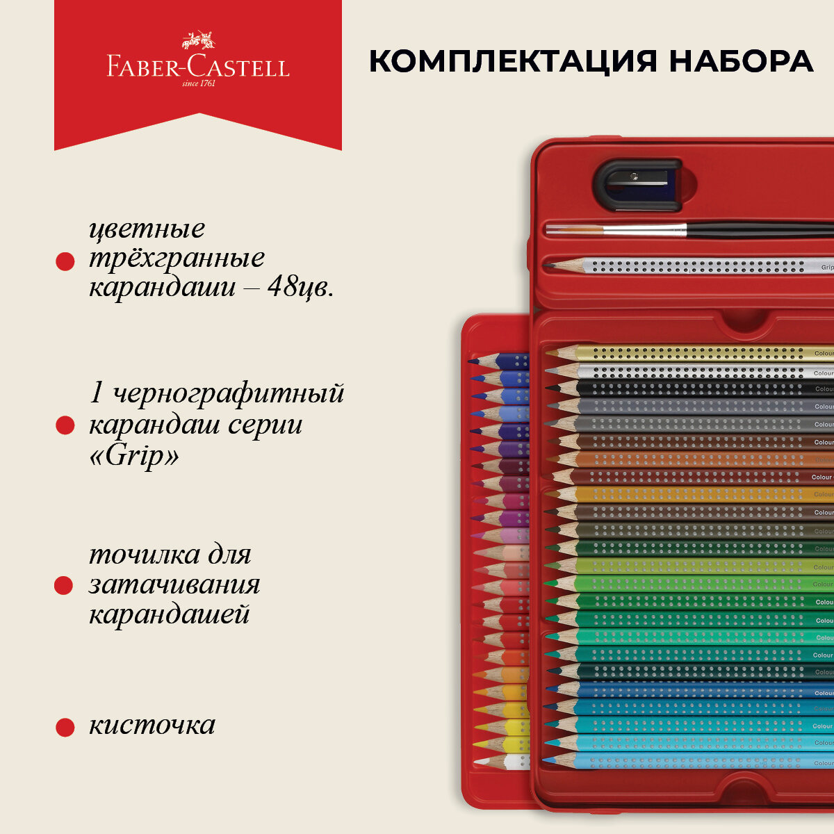 10 цен на Карандаши цветные Faber-Castell "Grip", 48 цв.+3, с кистью, точилкой, трехгранные, заточенные