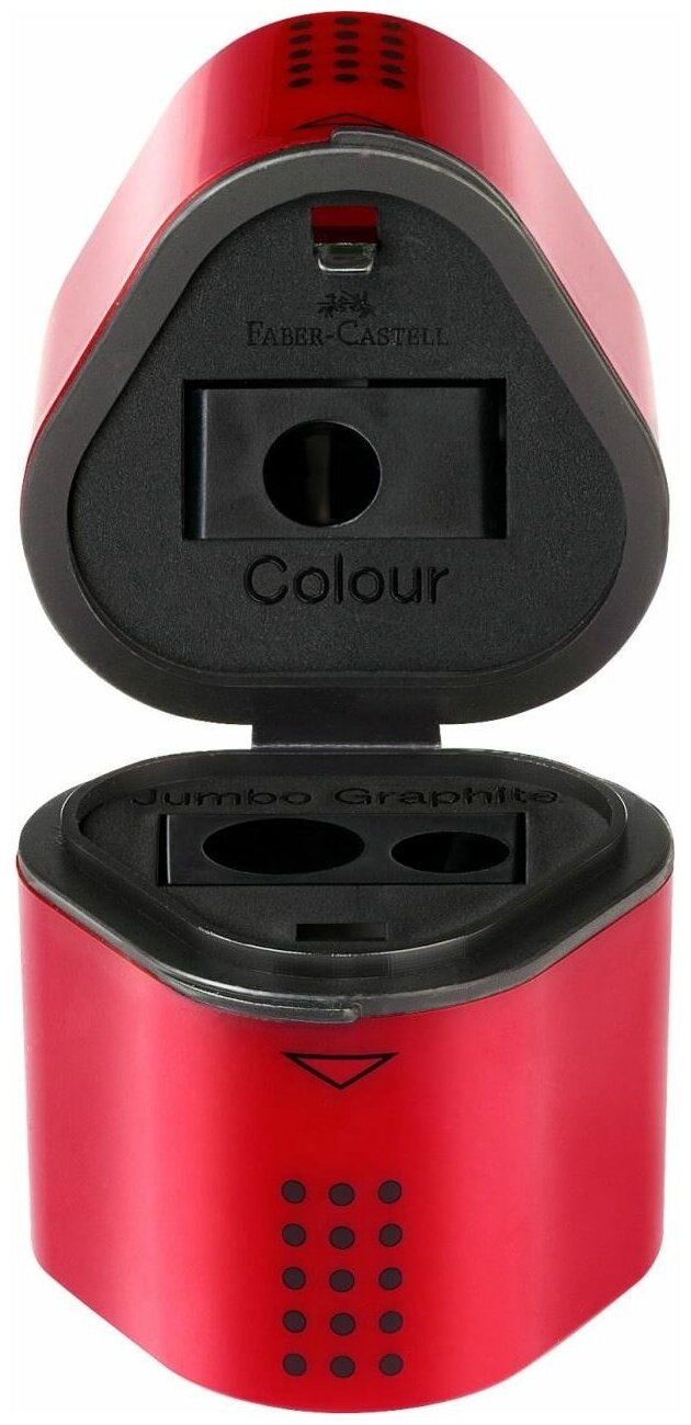 Точилка FABER-CASTELL «Trio Grip 2001», 3 отверстия, 2 контейнера, пластиковая, красная/синяя