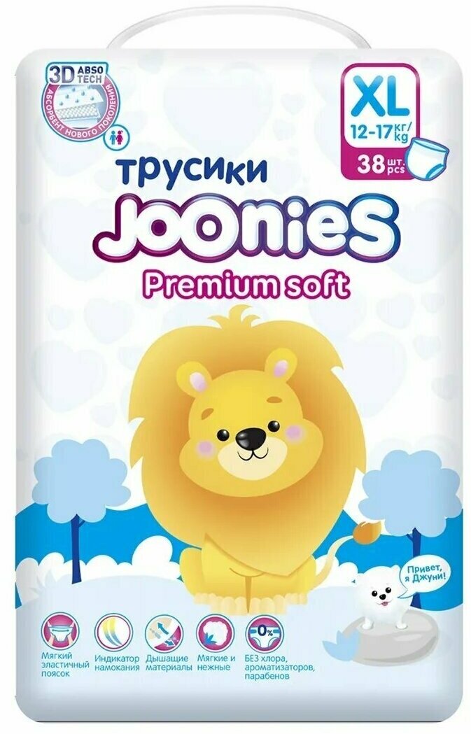 Подгузники-трусики JOONIES Premium Soft, размер XL (12-17 кг), 38 шт.