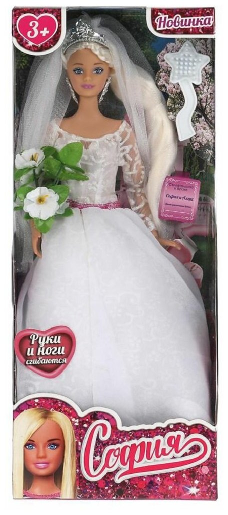 Кукла София невеста, 29 см (в комплекте букет и расческа) в коробке