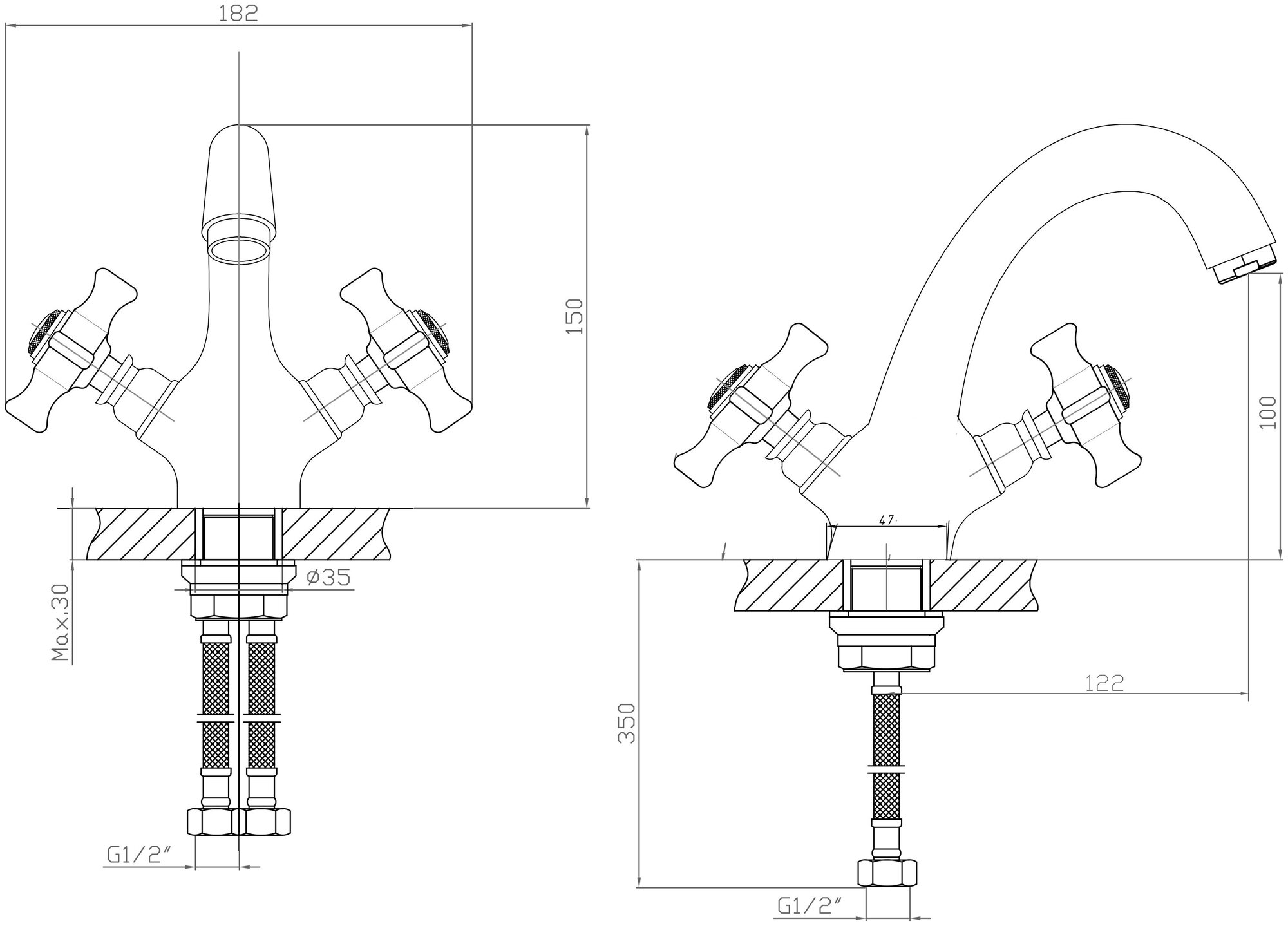 Смеситель для раковины Agger Retro-X A1702100 двухзахватный 324