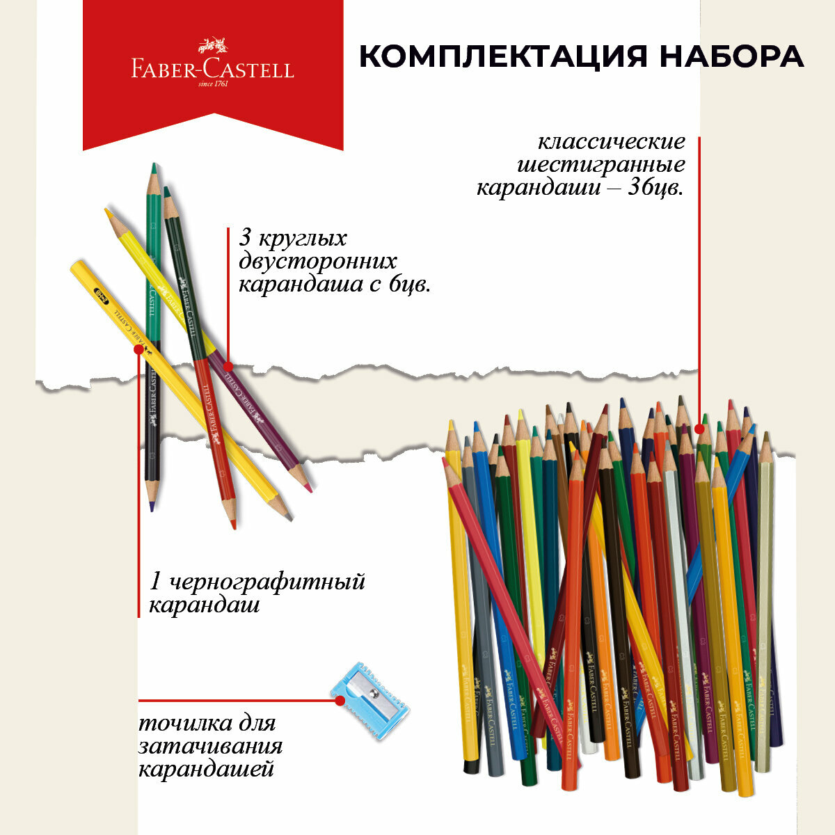 Карандаши цветные Faber-Castell, 36 цветов+4, заточенные, с точилкой информация:
