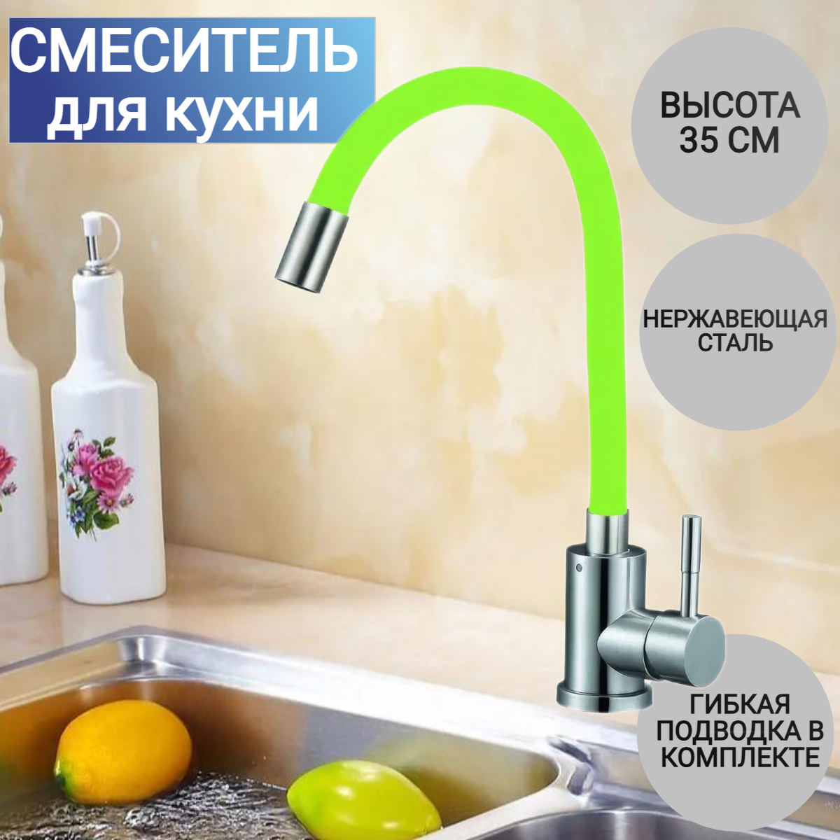 Отзывы на Смеситель для кухни мойки Solone EZA4-F090GN с гибким силиконовым изливом, кран для кухни, зеленый