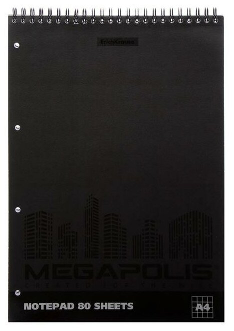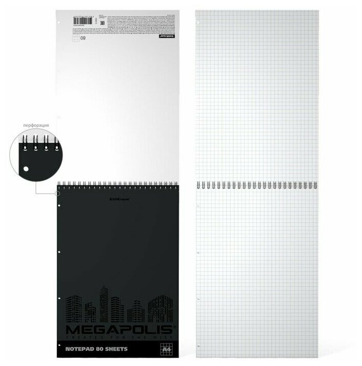Блокнот на гребне А4 80 листов в клетку ErichKrause Megapolis обложка мелованный картон твин-лак перфорация информация: