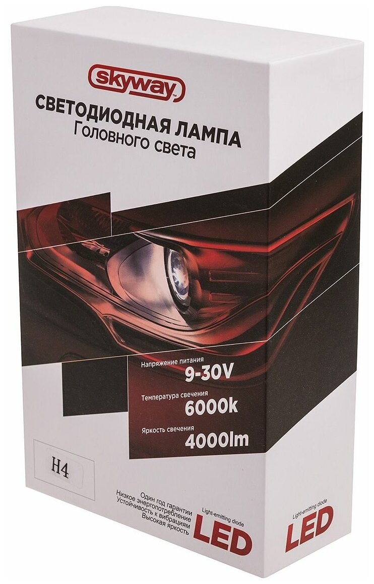 Светодиодная лампа H 4 12/24V 26W LED (аналог ксенона) 6000K (к-т 2 шт) SKYWAY S08701003