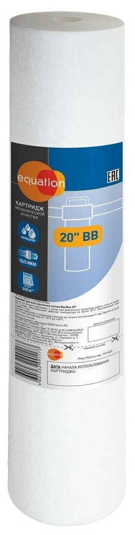 Картридж механической очистки Equation BB20 для холодной воды, 5 мкм информация: