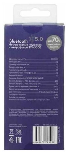 Наушники Gal TW-5300 White информация: