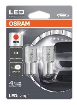 OSRAM 7456R-02B Лампа подсветки светодиодная P21W 12V "OSRAM" (красная) (2 шт.) информация:
