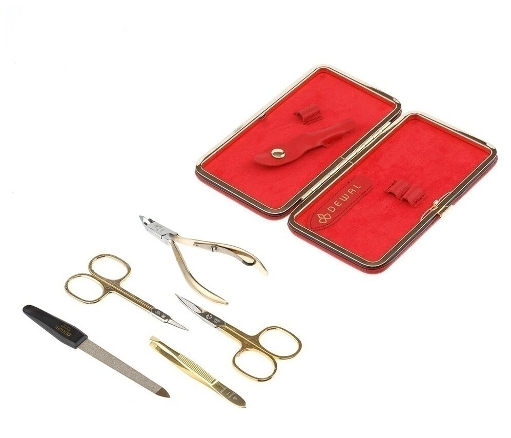 10 цен на Маникюрный набор DEWAL, 5пр. Футляр: натуральная кожа, цвет красный DEWAL MR-903RED