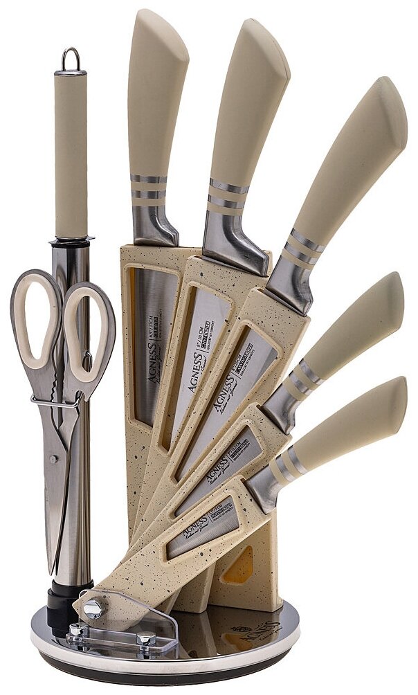 Набор ножей Agness с ножницами и мусатом на пластиковой подставке, 8 предметов (911-644) информация: