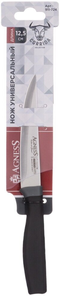 Нож кухонный Agness "Corrida" универсальный, 12,5см, нержавеющая сталь, пластик, черный (911-724) информация: