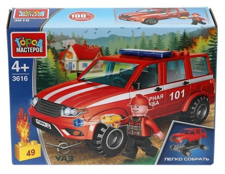 Конструктор Город мастеров UAZ patriot Пожарная служба, 49 деталей (легко собрать)
