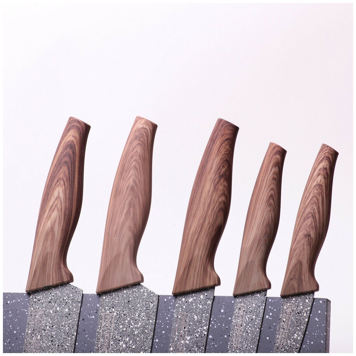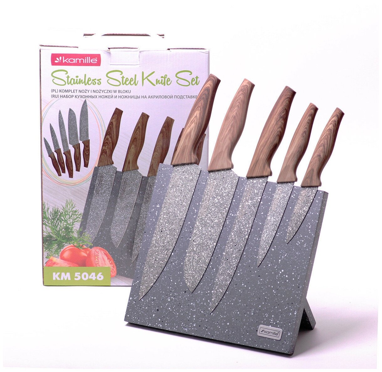 10 цен на Набор ножей 6р из нерж.стали на подст.с мрамор.покрытием (5 ножей+подставка) 5046