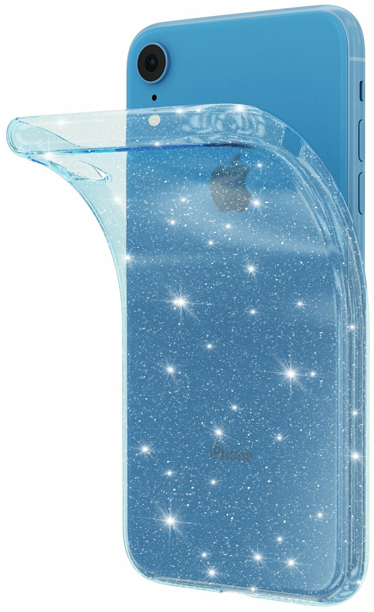 10 цен на Чехол на Айфон XR Прозрачный силиконовый бампер чехол iPhone XR голубой с блестками