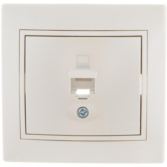 Розетка компьютерная RJ45 Lezard Mira встраиваемая, в сборе, жемчужно-белый