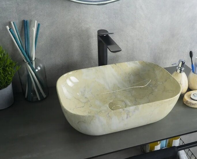 CeramaLux Раковина накладная прямоугольная под бежевый камень MNC 547 CeramaLux 7 319 ₽