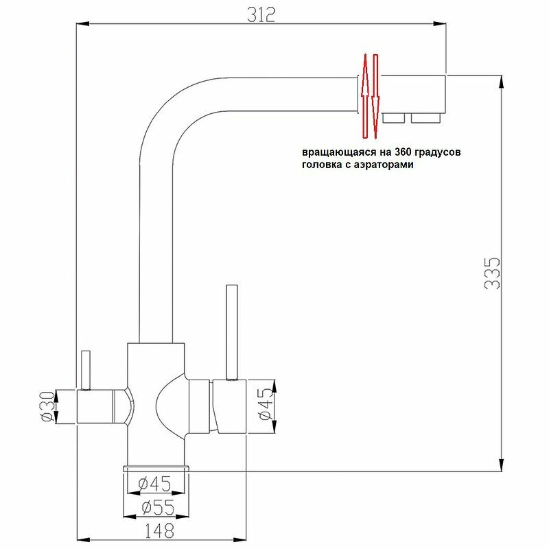 | Дополнительная информация | вращающаяся на 360 градусов головка с аэраторами; смеситель изготовлен из нержавеющей стали марки SUS 304 |