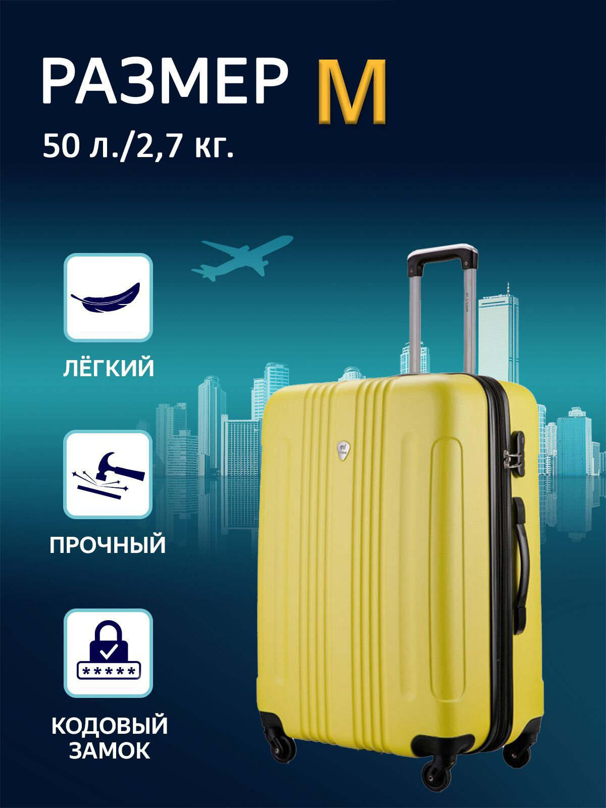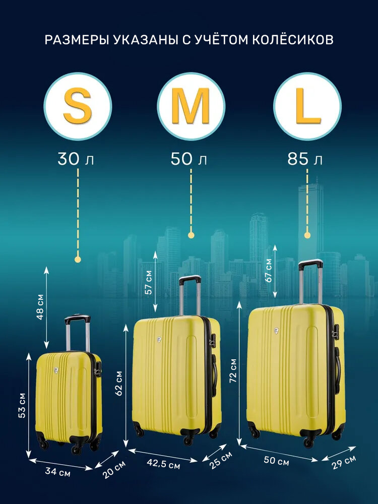Чемодан Lacase Bangkok, M 50 л, цвет желтый информация: