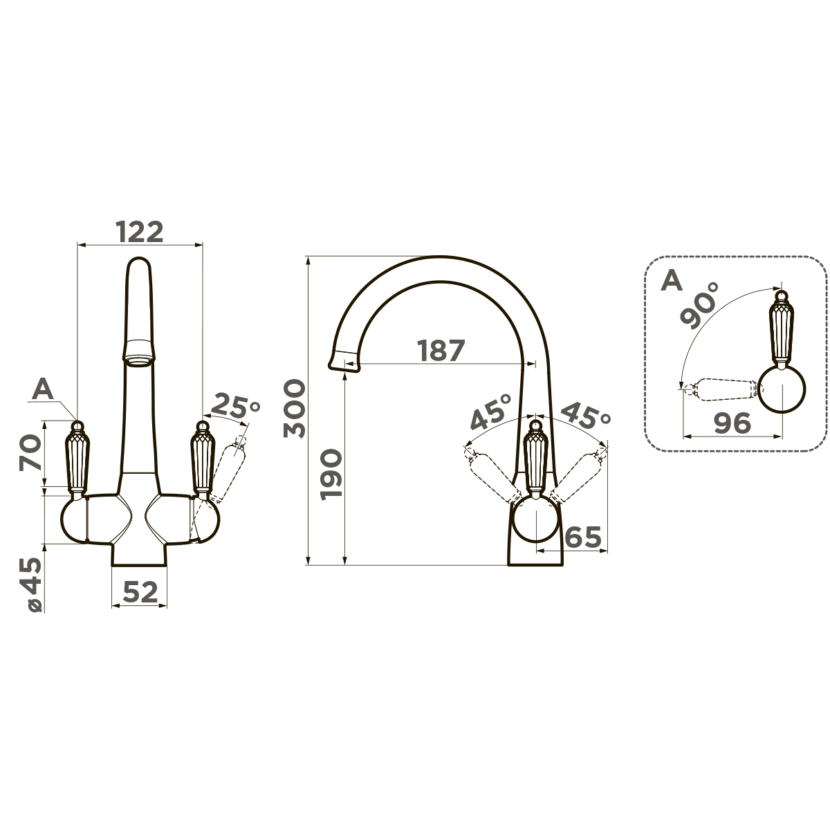 Смеситель для кухни с подключением к фильтру с питьевой водой из нержавеющей стали SUS304 Calorie CAL50116-3