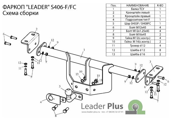 Фаркоп Leader-Plus (ТСУ S406-FC) для Suzuki Grand Vitara (2005-2016) со съемным шаром + сертификат