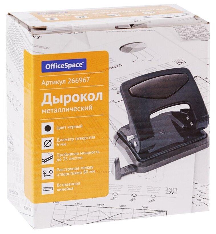 10 цен на Дырокол OfficeSpace 35л., металлический, черный, с линейкой