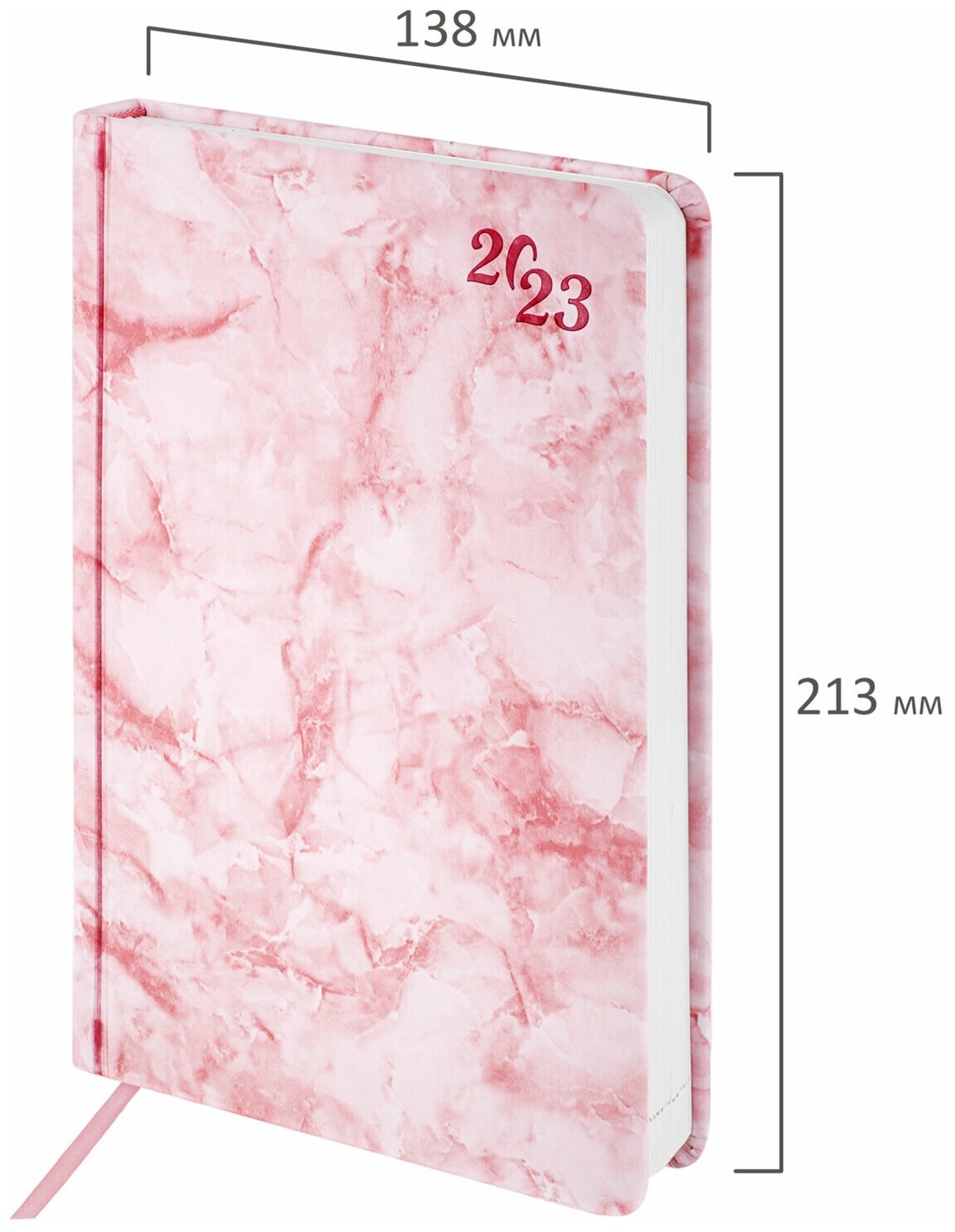 Ежедневник-планер (планинг) / записная книжка / блокнот датированный на 2023 год А5 (138x213 мм) Brauberg Marble, под кожу, розовый