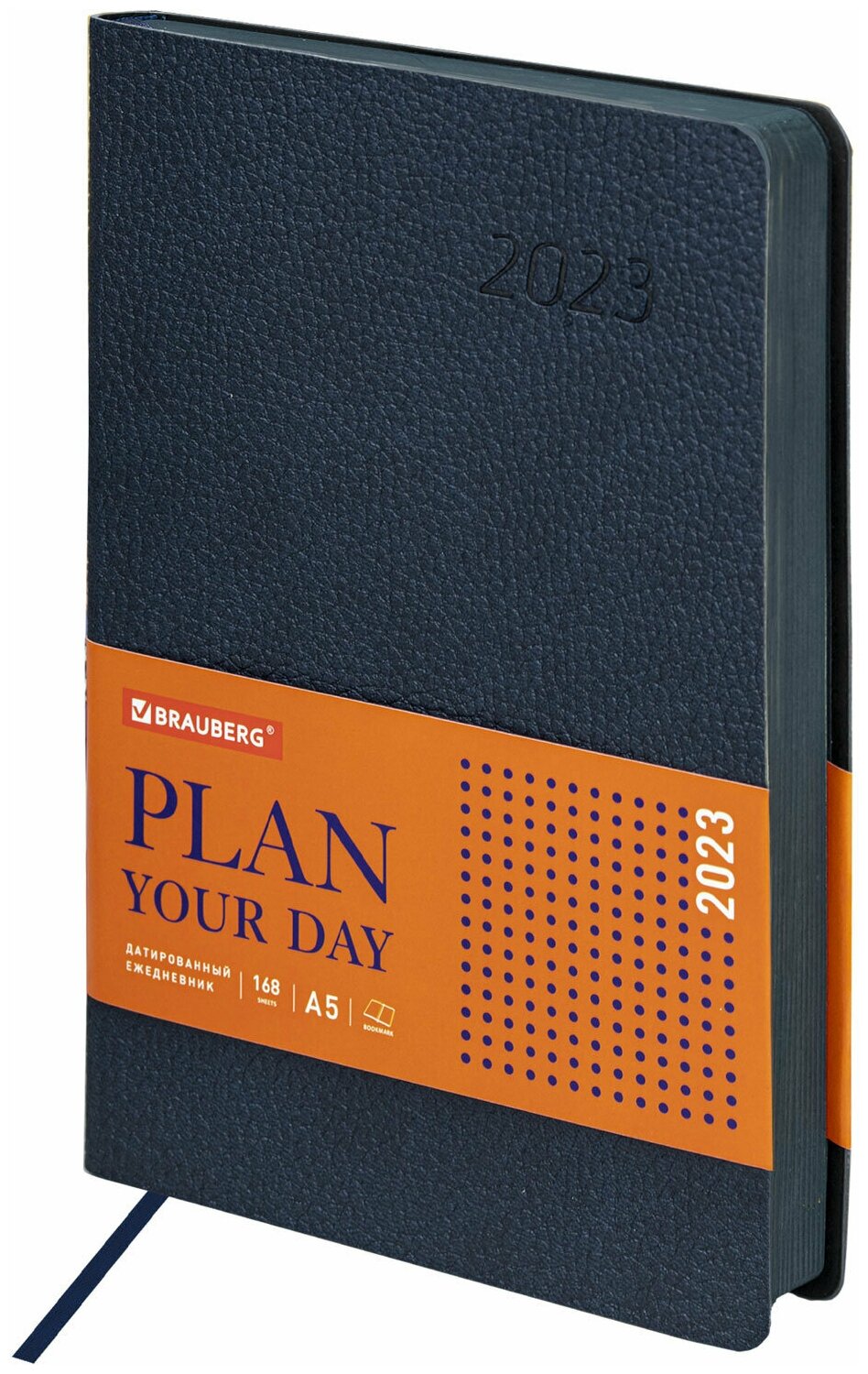Ежедневник датированный 2023 А5 138x213 мм BRAUBERG "Stylish", под кожу, темно-синий, 114068