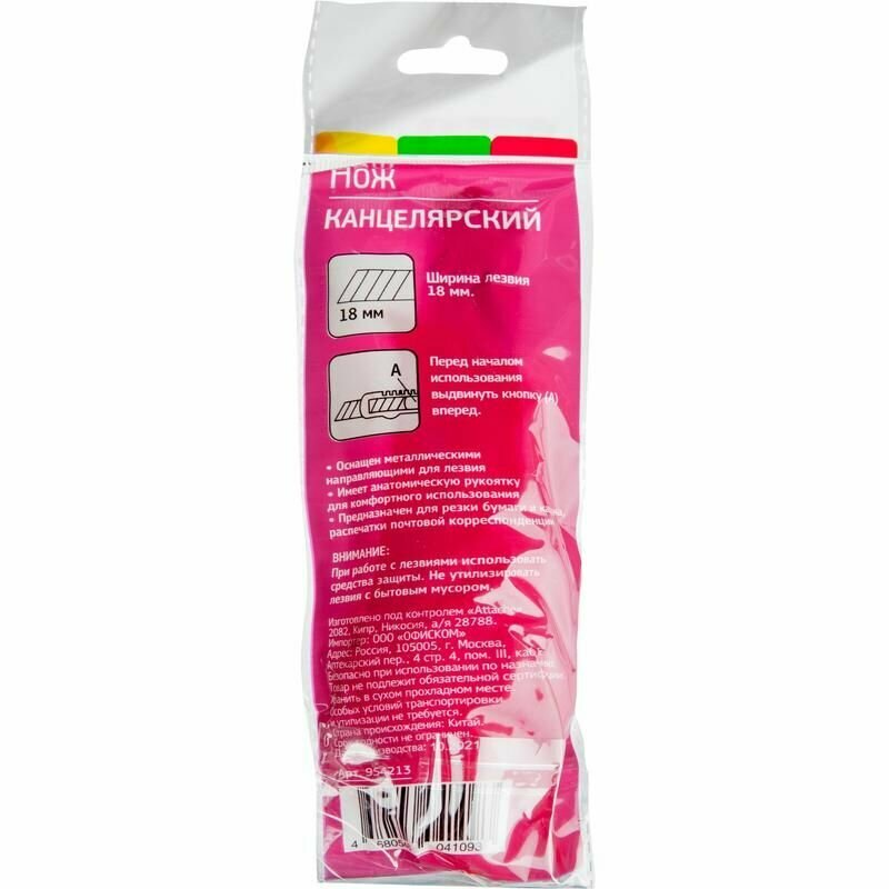 Нож канцелярский 18мм Attache с металлическими направляющими, 954213 378 ₽