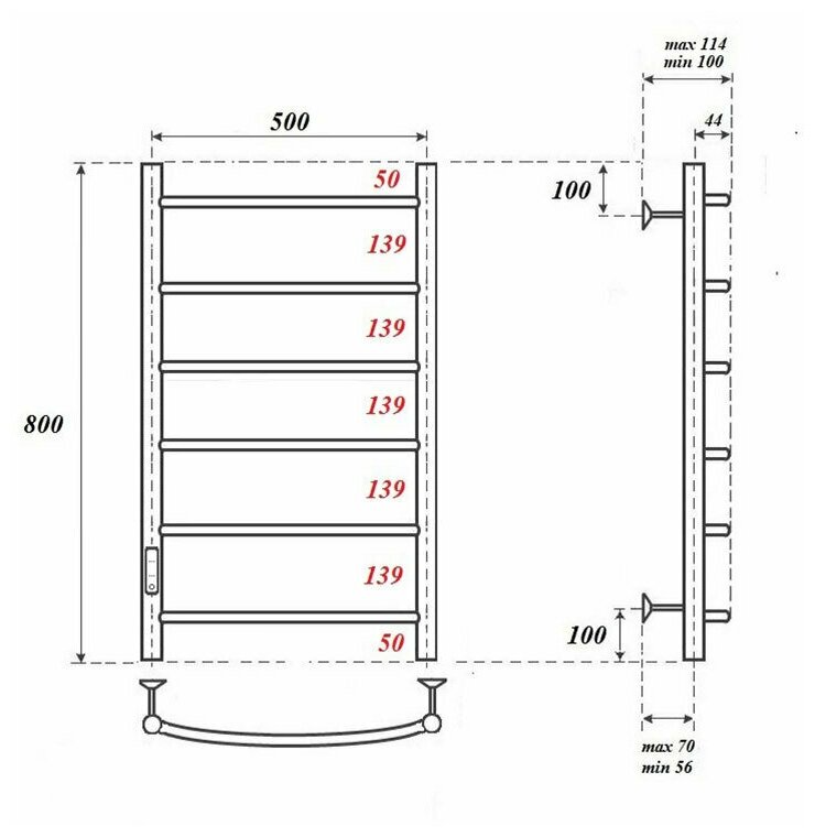 Point Полотенцесушитель электрический П6 500x800 диммер слева, белый Pn04758w .