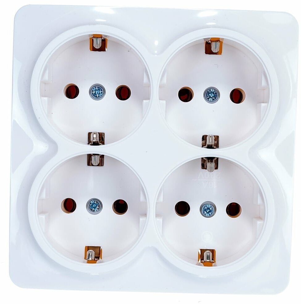 Розетка четырехместная квадратная серия "IONICH", с/з, о/у, 16А, 220В, белая (еврослот)
