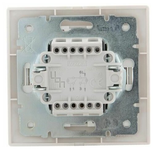 Выключатель скрыт устан, 2-кл, б/з, керам, бел, со встав, Lezard, Mira, 701-0202-101