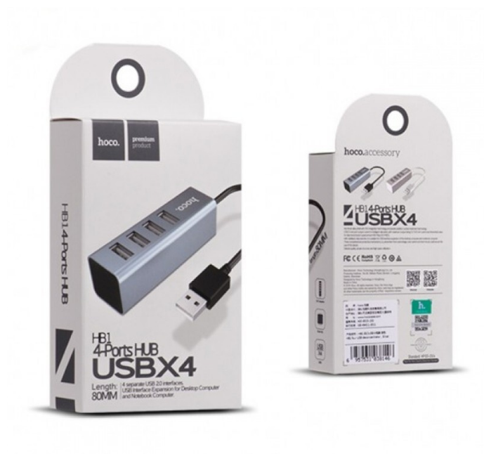 Переходник HOCO HB1 USB HUB на 4 порта, серый информация: